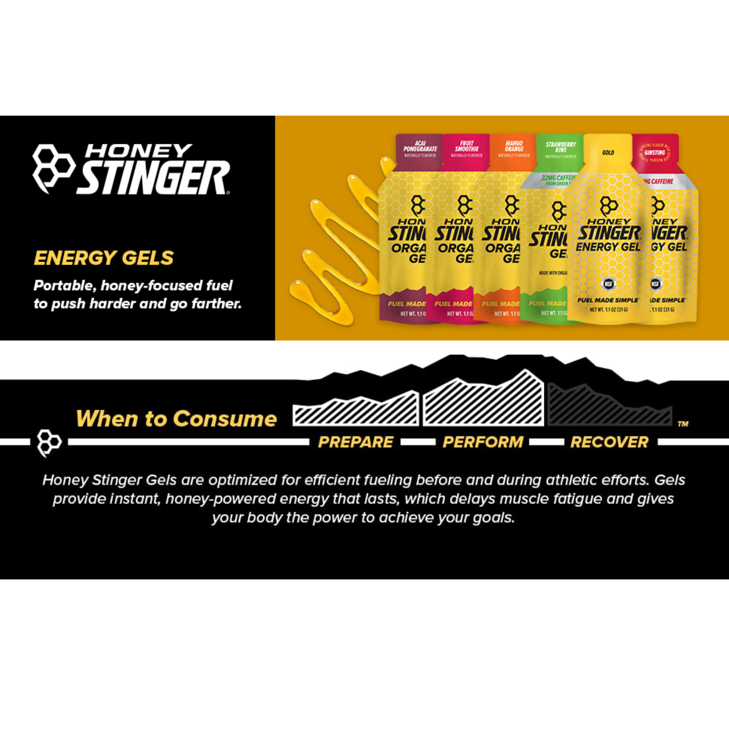 Honey Stinger, Gel de energía Gold orgánico, 24 sobres, 31 g (1,1 oz) cada uno cafeína y sin gluten con miel orgánica